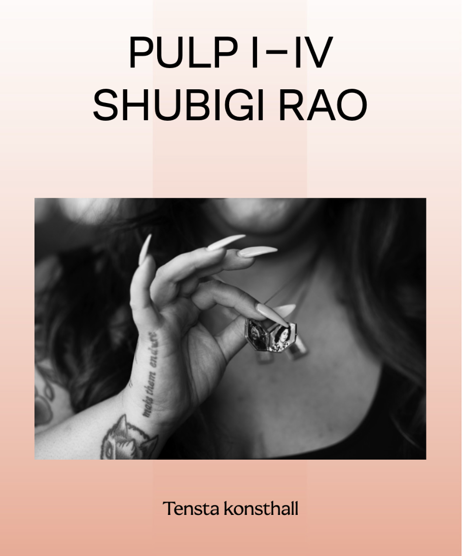 Pulp I–IV är både namnet på utställningen och Shubigi Raos tioåriga projekt presenterat i bokformat som utforskar förstörelsen av och motståndskraften hos böcker, bibliotek, språk och system för kunskap. Ordet pulp har en dubbel betydelse: det syftar både på böckernas materialitet—det vill säga vad de är gjorda av, pappersmassa—och på deras förstörelse, processen att lösa upp till massa. Rao’s böcker fungerar både som konstverk och som kreativ facklitteratur; de förgrenar sig i filmer, fotografier och teckningar där personliga berättelser och forskning förs samman. De undersöker hur bibliotek och tryckt material, som bärare av minne och identitet, har blivit censurerade, utsatta, bevarade eller omvandlade i mötet med konflikter, kulturell förlust och politisk repression.